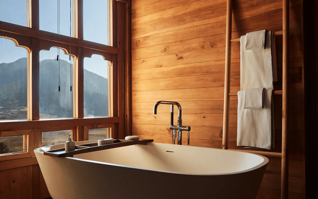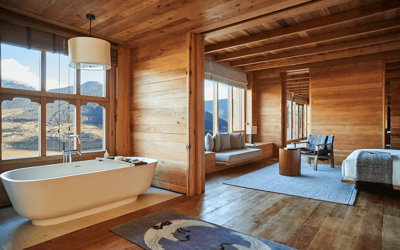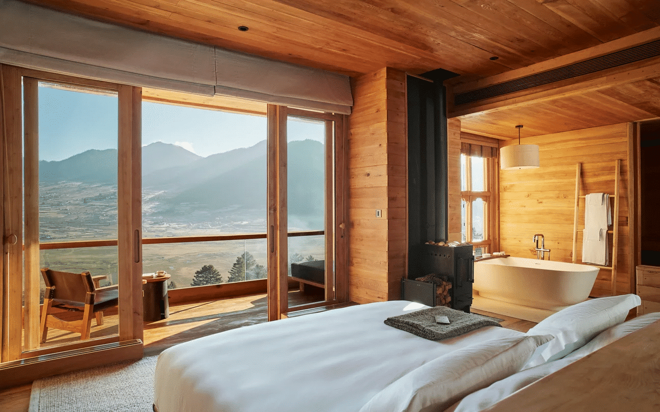 Avec seulement 8 suites et 1 villa, ce resort intime allie architecture bhoutanaise traditionnelle et design épuré, avec de grandes baies vitrées offrant une vue imprenable sur la vallée. Il dispose d’un spa holistique, d’un espace de méditation, et d’un restaurant gastronomique, proposant des plats bio et locaux. Chaque matin, un petit-déjeuner nourrissant est servi face aux paysages préservés de Gangtey.