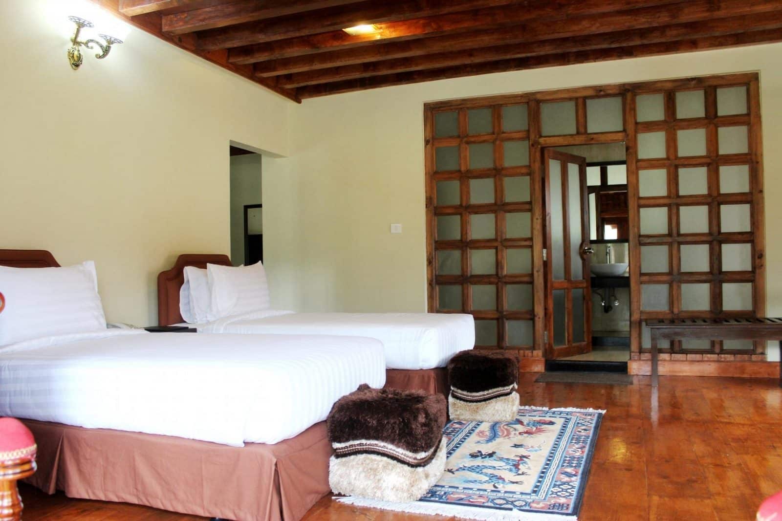 Il propose 20 chambres spacieuses, décorées avec des éléments en bois sculpté et des touches culturelles locales, offrant une atmosphère chaleureuse et authentique. L’hôtel dispose d’un restaurant servant des spécialités bhoutanaises et internationales, d’un spa relaxant, et d’un salon avec vue panoramique sur la vallée. Chaque matin, un petit-déjeuner copieux à base de produits frais est proposé aux voyageurs.