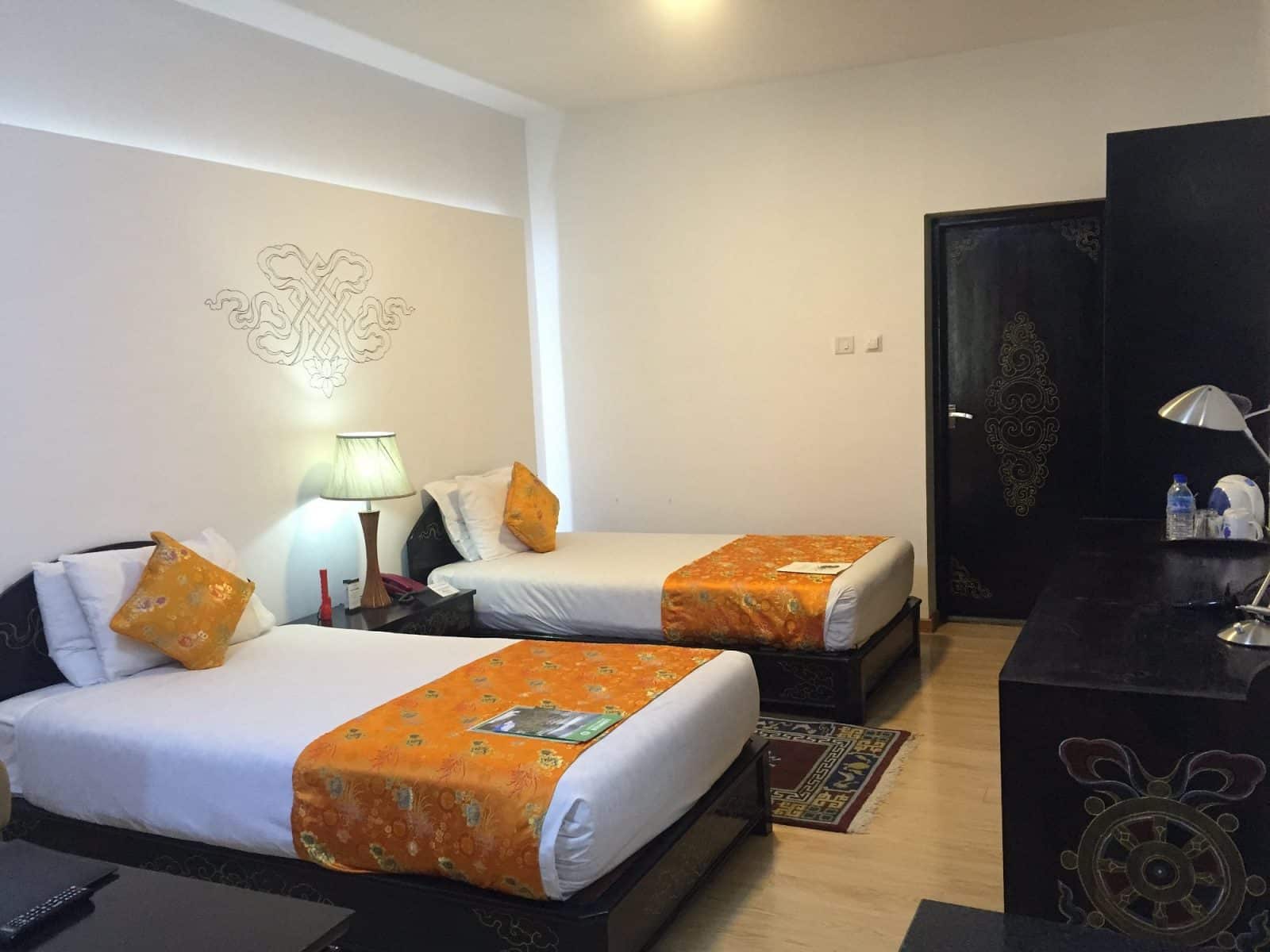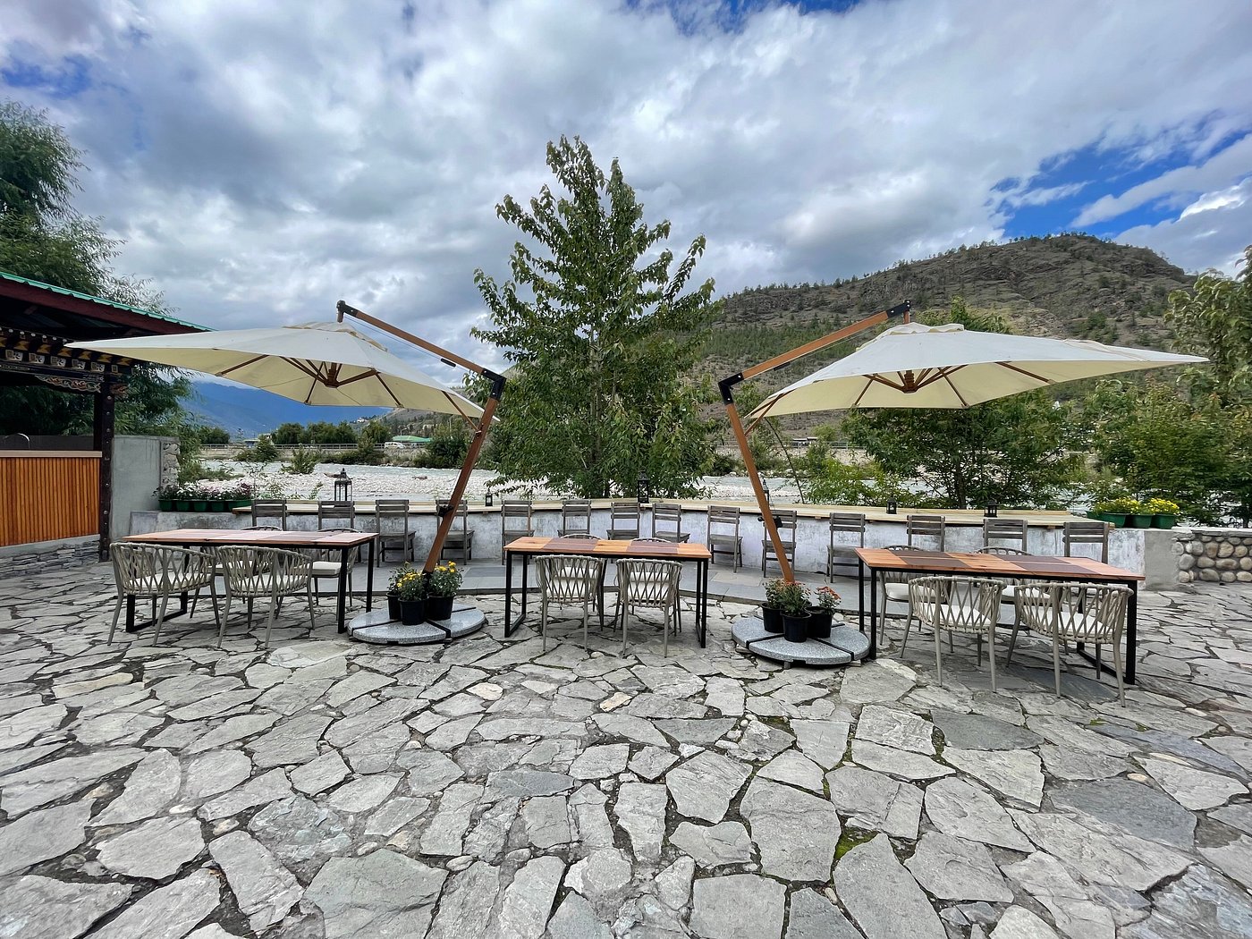 Il propose 39 chambres et suites spacieuses, décorées avec des éléments en bois sculpté et des tissus locaux, offrant une atmosphère chaleureuse et authentique. L’établissement dispose d’un spa relaxant, d’un centre de fitness, et d’un restaurant proposant une cuisine bhoutanaise et internationale avec des ingrédients frais et locaux. Chaque matin, un petit-déjeuner copieux est servi avec une vue magnifique sur les montagnes environnantes.